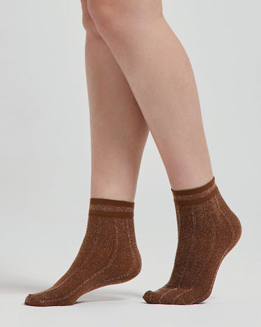Calzino coprente color cognac in poliammide con motivo a righe e polsino in lamé. Un design che combina eleganza e modernità, ideale per chi apprezza i dettagli curati. Il motivo conferisce un tocco sofisticato, mentre il polsino in lamé offre una nota di stile sobria ma d’impatto.
