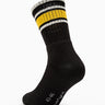 Calza da tennis da uomo in cotone con motivo righe posizionate e sfondo nero.