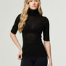 Maglia rib manica corta collo alto in modal cashmere a costine