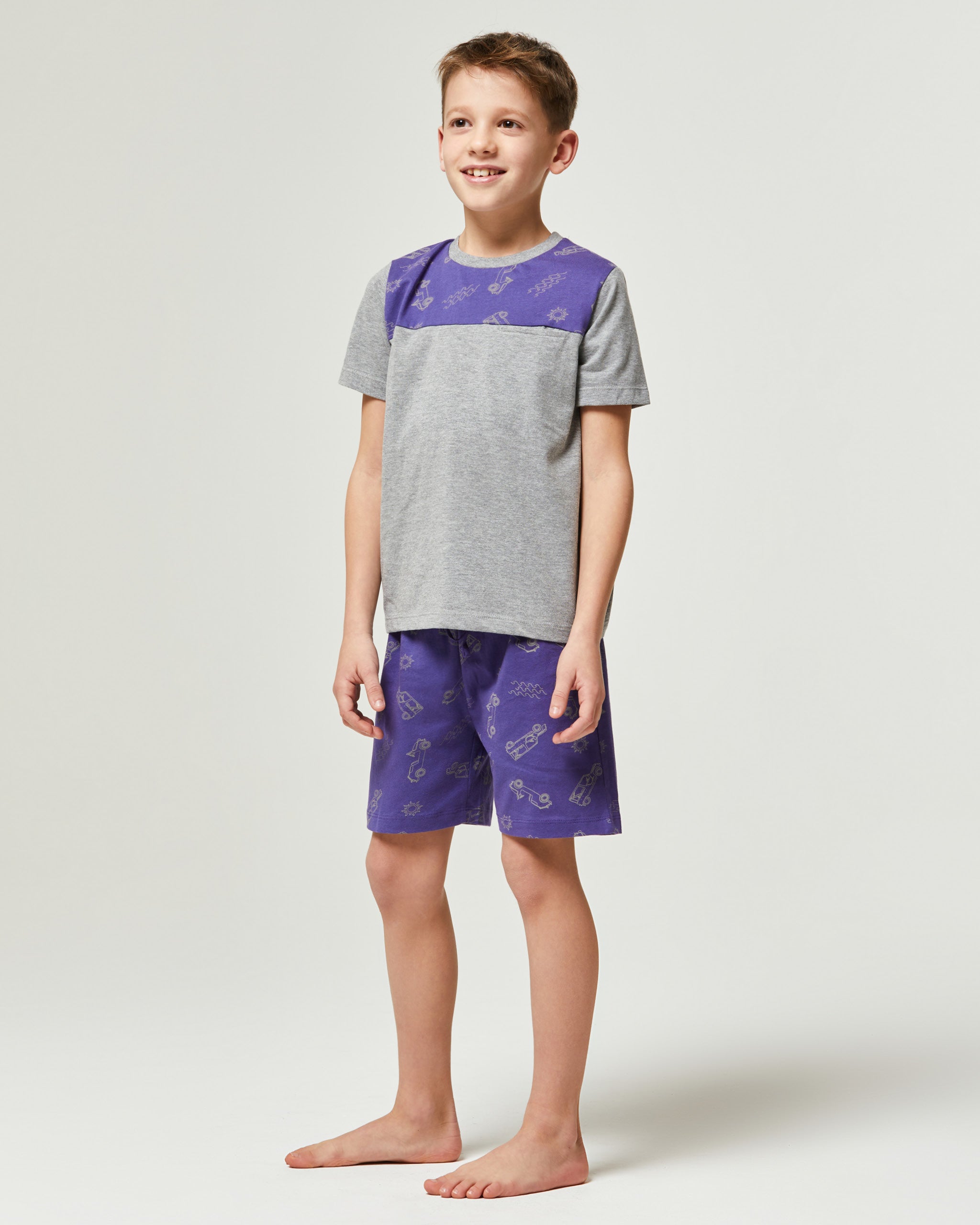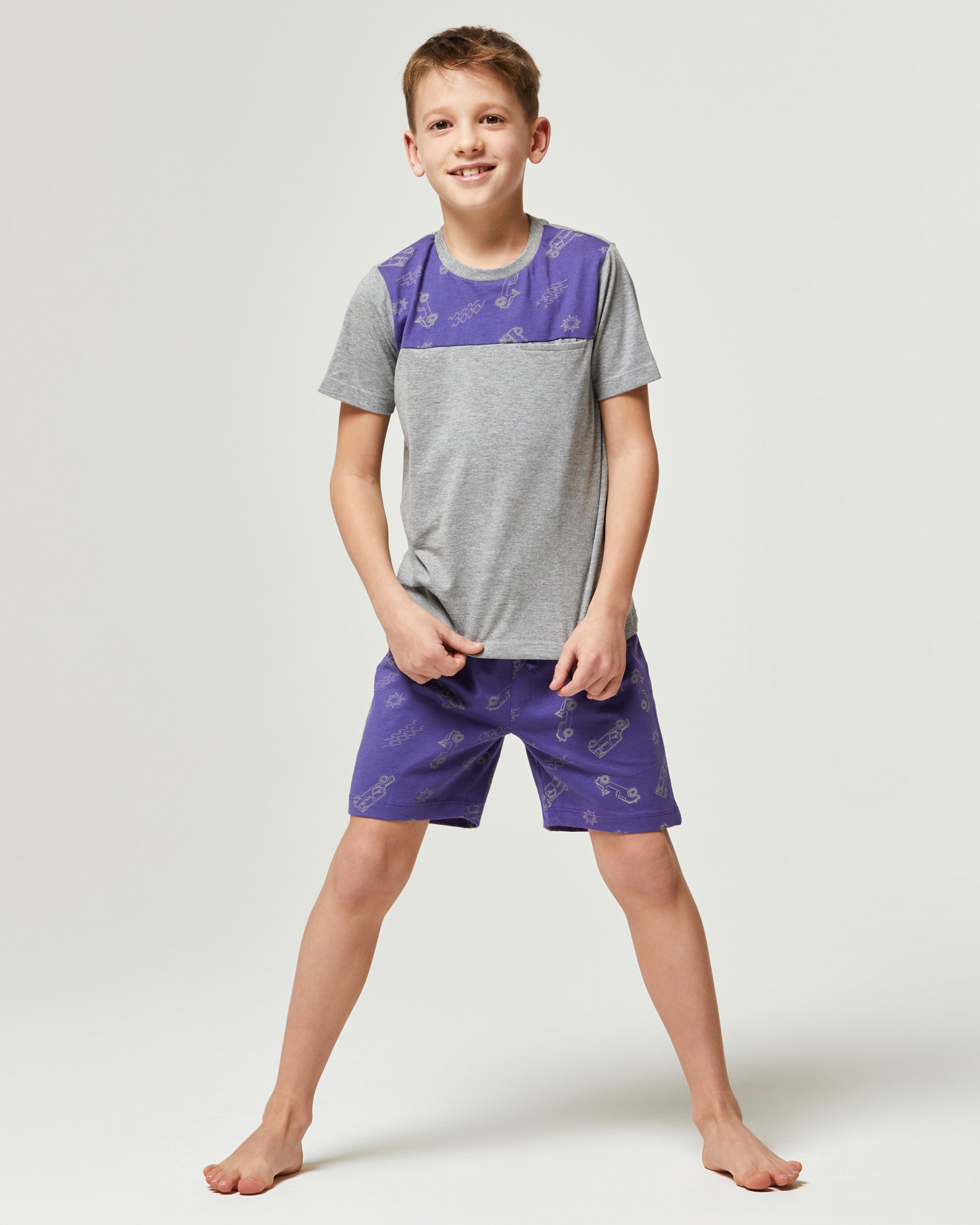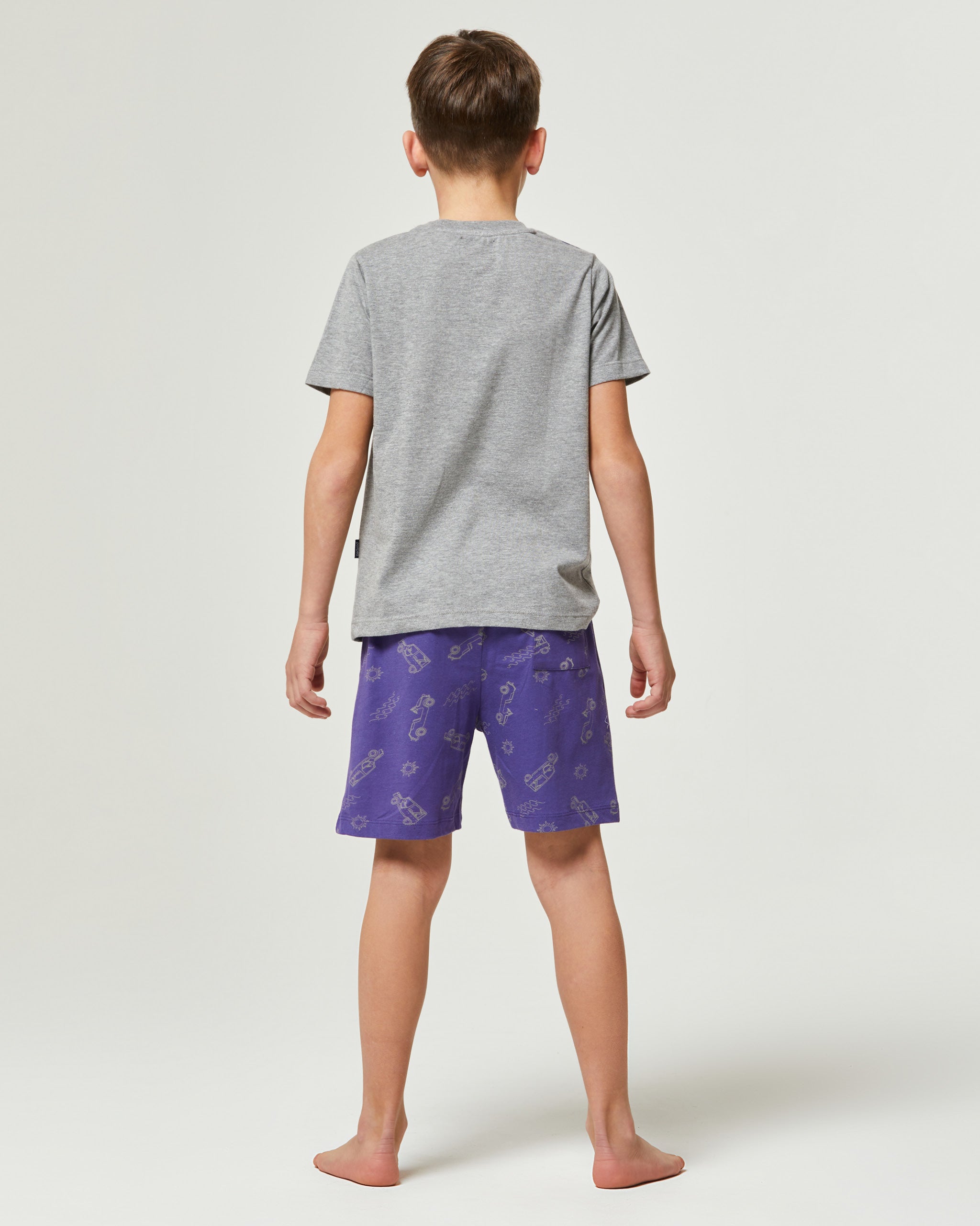 I più piccoli diventeranno veri fan della notte grazie al pigiama Carrubo. Realizzato in cotone presenta una maglia a maniche corte abbinata col suo pantaloncino. La T-Shirt presenta un’eccentrica stampa sul fronte che crea un look ideale per ogni bambino mentre il pantaloncino riprende la fantasia della maglia con coulisse in vita. Perfetto per donare comfort nelle occasioni di relax o durante la notte.