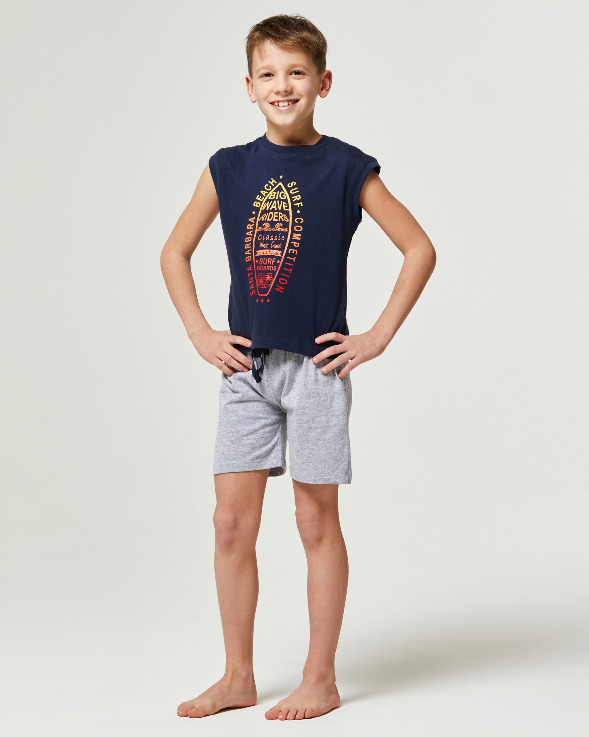 Trovare qualità e morbidezza nei prodotti per il tuo bambino non è sempre facile per questo il pigiama Cerro si adatta ad ogni esigenza, anche dei più piccoli. La canotta presenta una stampa sul fronte che crea un look curato nei dettagli mentre il pantaloncino in tinta unita ha una coulisse in vita per regolare l’aderenza. Il risultato è un completo ideale che fornisce tutto ciò che serve al tuo bambino.