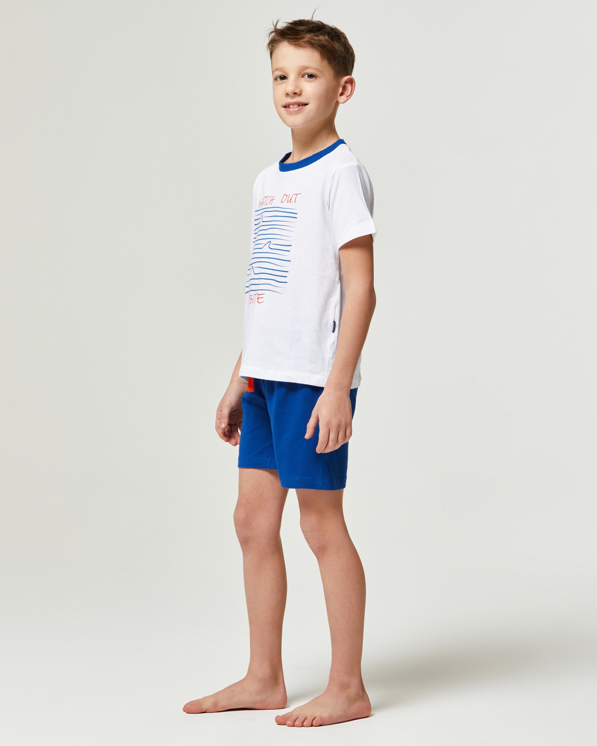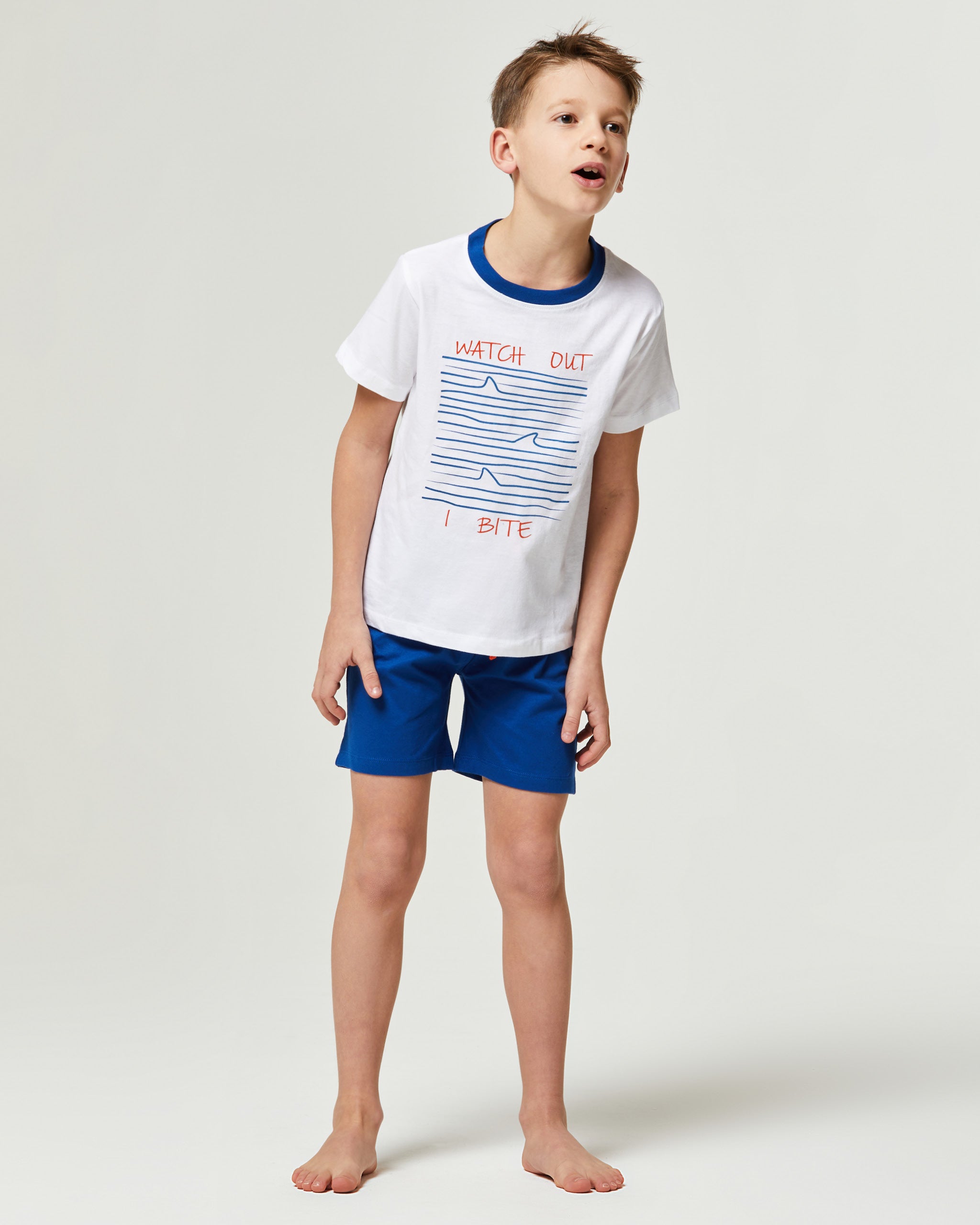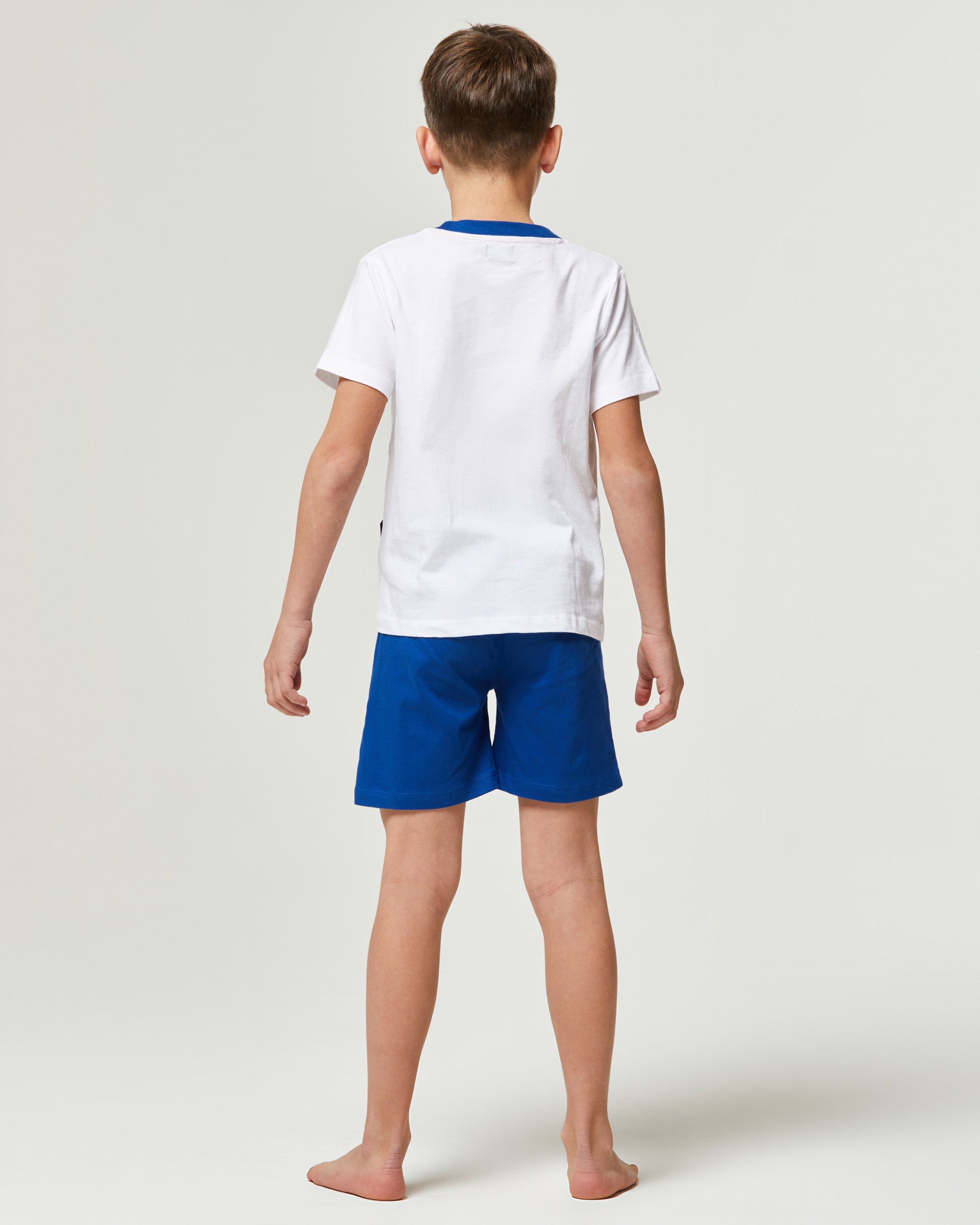 Il pigiama corto Nespolo presenta una maglia a maniche corte abbinata col suo pantaloncino: La T-Shirt presenta un colletto a contrasto con la stampa sul fronte mentre il pantaloncino in tinta unita con coulisse in vita per regolare l’aderenza. Non ti resta che guardare il tuo bambino crescere mentre vive le sue avventure indossando il vero comfort Pompea.