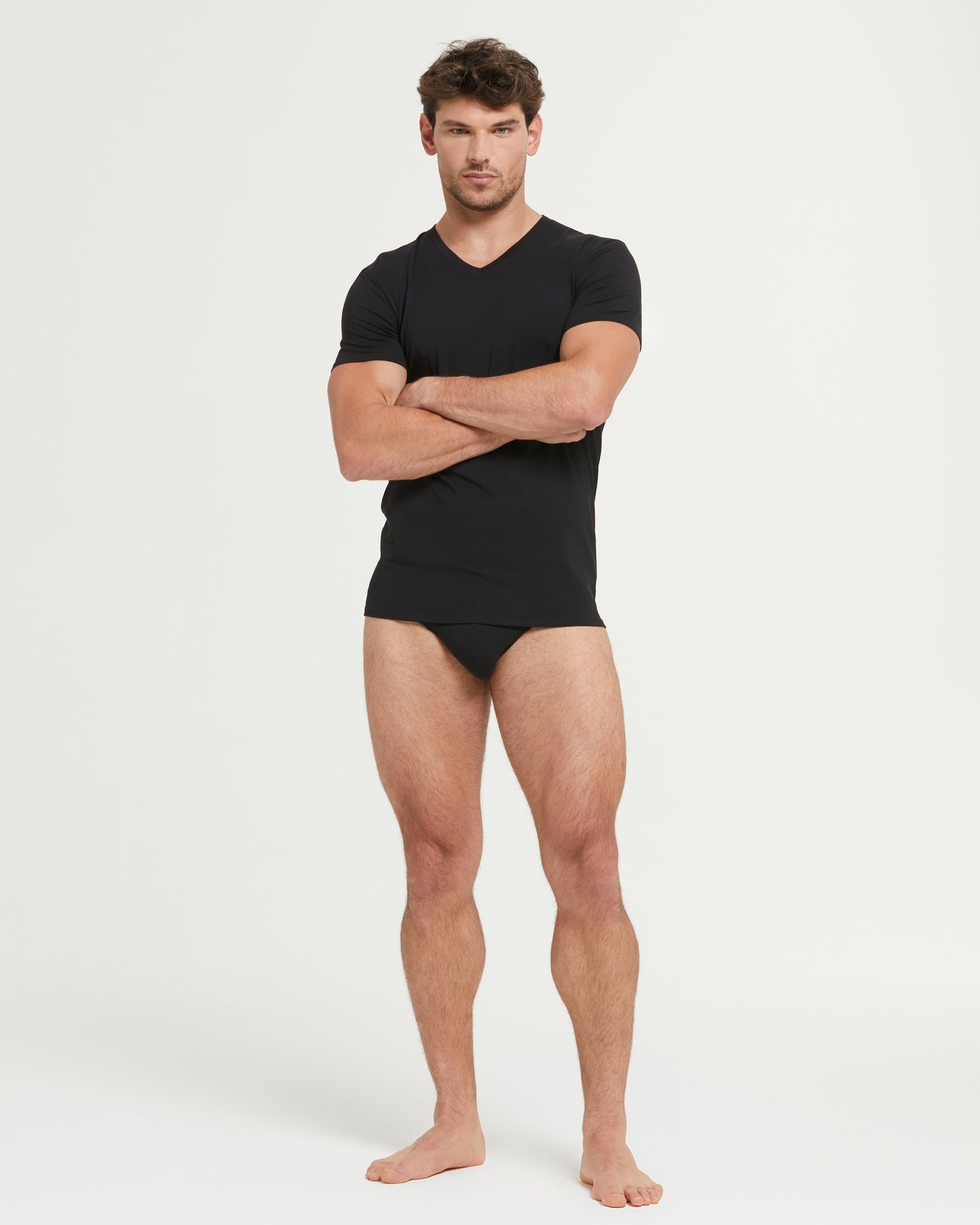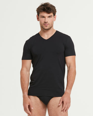 Slim- Fit-Herren-T-Shirt aus weichem Baumwoll-Modal mit einfarbigem V-Ausschnitt . Elastisch, atmungsaktiv, weich im Griff und mit einer bequemen Passform ausgestattet, ist es auf Langlebigkeit ausgelegt und gewährleistet die Widerstandsfähigkeit des Kleidungsstücks an den empfindlichsten Stellen.