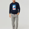 Herren-Pyjama Baumwolle mit langärmeligem, einfarbigem Sweatshirt mit Rundhalsausschnitt, elastischen Profilen und kontrastierendem Bergmotivdruck; lange Hose aus Baumwolljersey mit Detail am Seitenband und kontrastierendem Kordelzug.