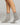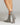 Stocking made of grey melange cotton material, embellished with bright rhinestone crystals and with an edge that features a different color, creating a notable contrast.