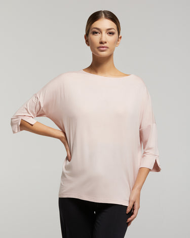 Camiseta con cuello barco de viscosa sostenible corte y oversize