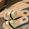 Estilo y comodidad se encuentran en la chancla de tira de diseño distintivo. La parte superior a rayas aporta un toque refinado y original, perfecto para un look casual pero sofisticado. La suela efecto madera, ligera y resistente, asegura una caminata cómoda y estable. Ideal para los días de verano, esta chancla es la elección perfecta para quienes desean unir elegancia y practicidad sin compromisos.