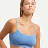 Sujetador de tirantes estrechos fabricado con tecnología seamless sin costuras. Se caracteriza por la combinación de la tecnología seamless con la naturalidad y suavidad de la fibra de algodón. Presenta el logo NO STRESS® colocado en un ligero contraste de color en la parte derecha de la prenda.