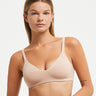 Sujetador básico color piel en suave algodón elástico, sin aro, con copas sin costuras. Transpirable, ligero y delicado para la piel. Ideal para uso diario gracias a su practicidad y comodidad.