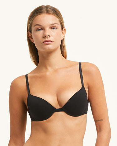 Sujetador push-up de microfibra elaborado con tecnología sin costuras. Gracias a su forma ergonómica levanta y sostiene los senos de forma natural. Cuenta con tirantes ajustables y copas ligeramente acolchadas. Ideal para redondear el pecho creando un efecto volumen ligero.
