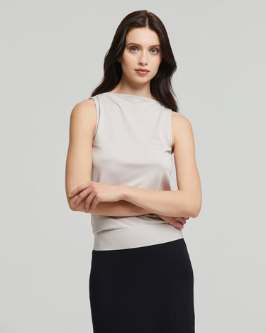 Camisa sin mangas de mujer con escote barco realizada con tecnología sin costuras. Ajuste regular fit adaptable que no aprieta y no deja marcas en la piel.