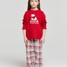 Pull chaud en coton interlock et pantalon en flanelle. La chemise est de couleur unie avec une encolure ronde et un très joli imprimé de Noël . Pantalon en flanelle à carreaux avec poche arrière.
