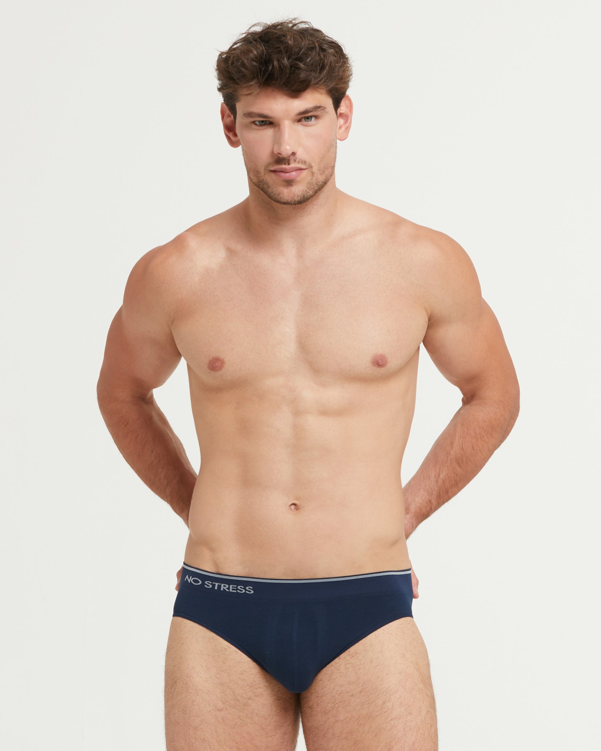 Slip en coton réalisé avec la technologie sans couture pour homme. Il se distingue par la fusion de la technologie sans couture avec la naturalité et la douceur de la fibre de coton. Il présente une ceinture marquée du logo avec l'inscription NO STRESS® positionnée en léger contraste de couleur sur le côté droit du vêtement.