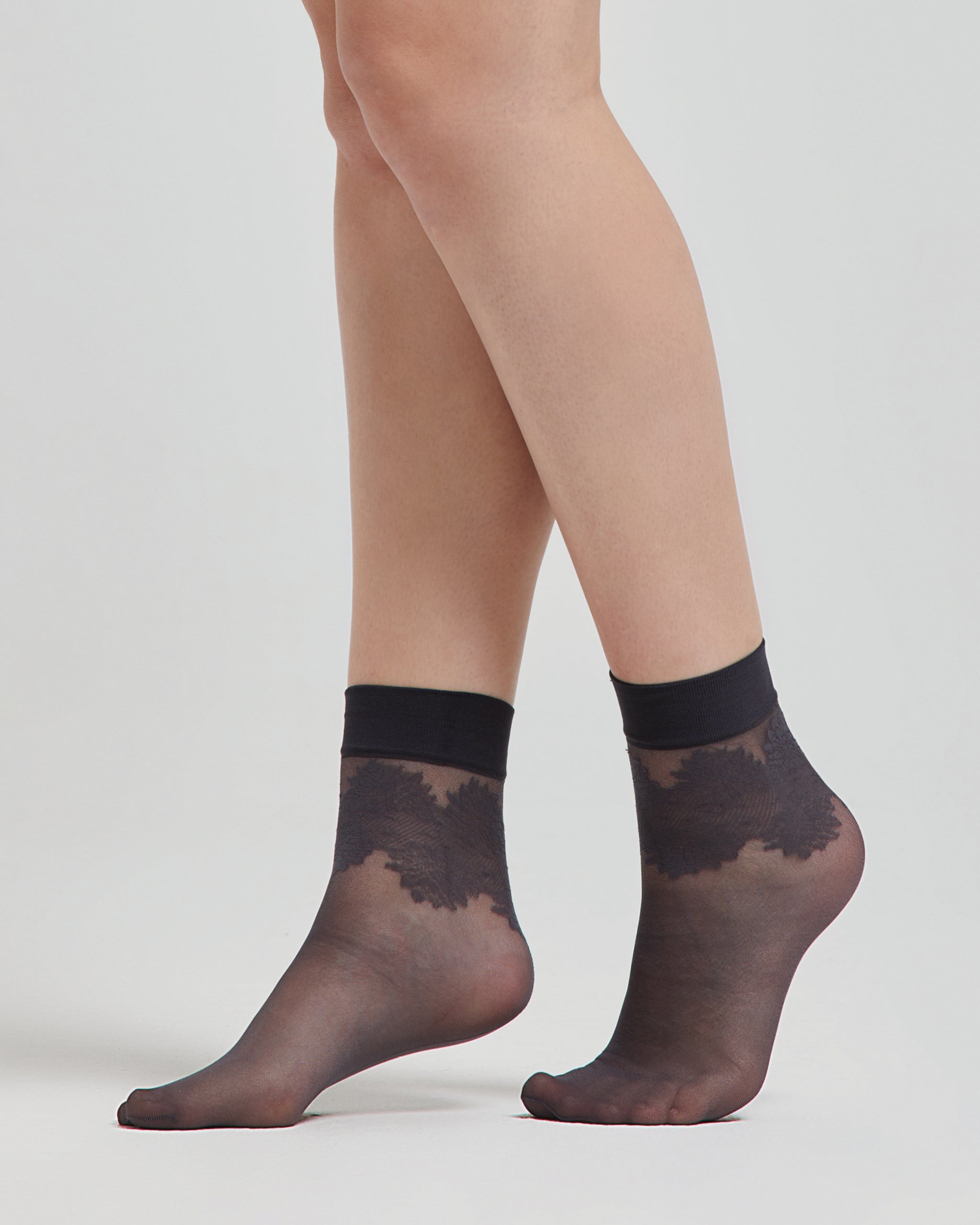 Calzino velato Onice con disegno balza in pizzo