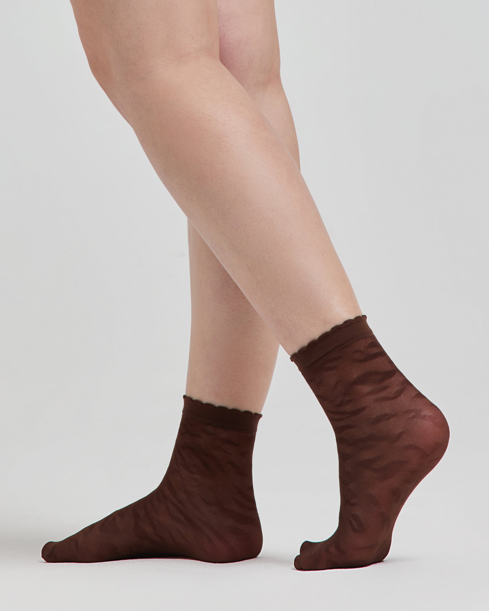 Calzino velato in poliammide con bordo a cappettine e stampa animalier. Un elemento audace e femminile, ideale per aggiungere un tocco deciso anche agli outfit più semplici. Il bordo raffinato si armonizza con il motivo forte per un bilanciamento di stile e unicità.