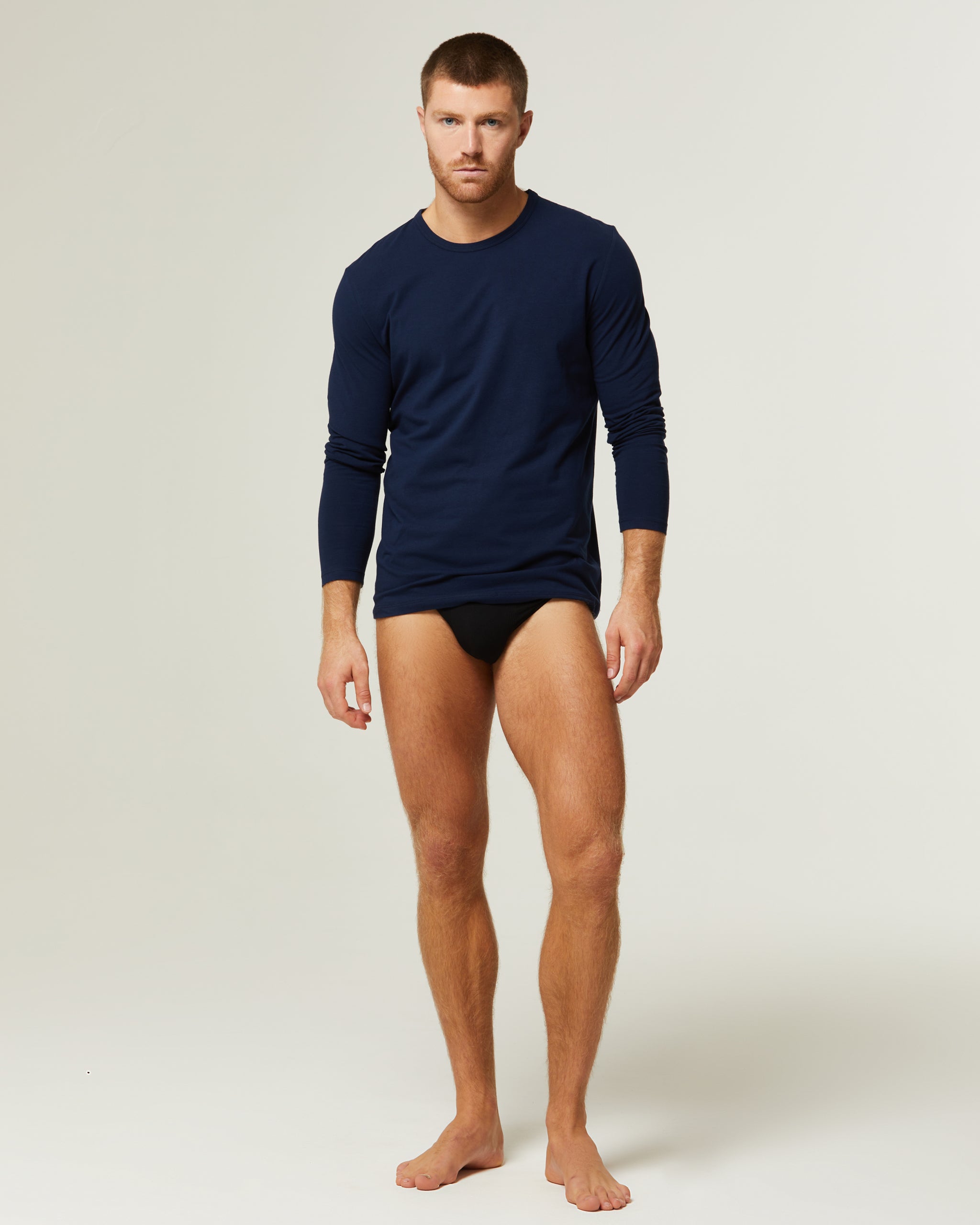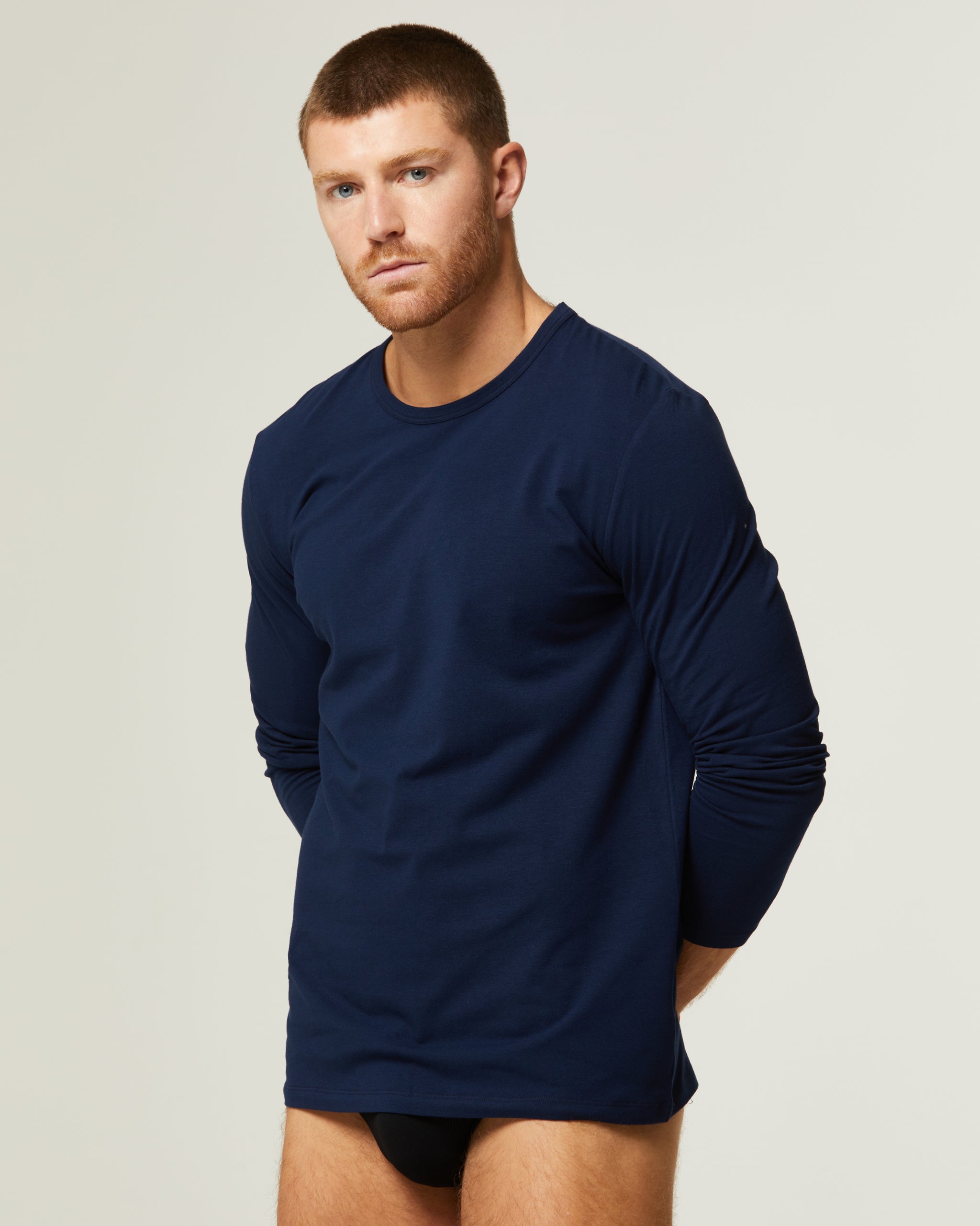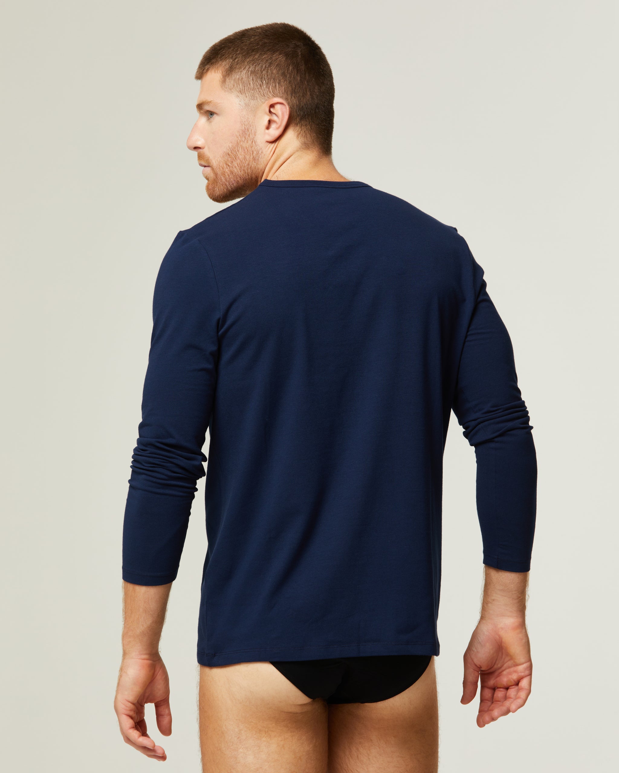 Maglia uomo navy a manica lunga in cotone caldo: semplice, funzionale e perfetta per l'inverno. Conserva il calore, assorbe l'umidità e rimane morbida anche dopo numerosi lavaggi. Da portare sotto i maglioni o come strato di base per affrontare le basse temperature senza compromettere il comfort.